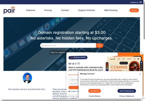 DomainOffer.net helps you to find the best deals, coupons, and discounts on domain. Also, you can check domain availability and compare prices from over 149 domain registrars with our tool. You can also use various domain-related tools, such as Whois checker, Hosting checker, and more. With DomainOffer.net, you can get the perfect domain for your online presence and save money with the best offer.